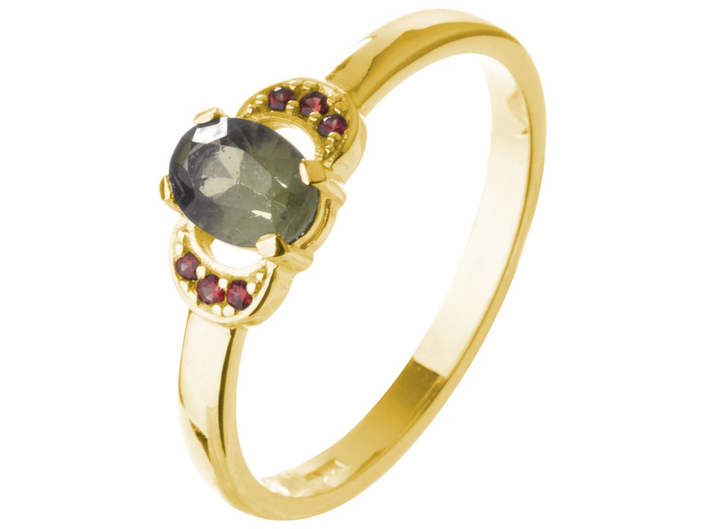 Silver ring with czech garnet and moldavite, gold plated - oval