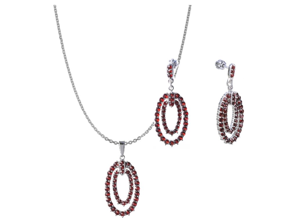 Stříbrný set šperků 1204 s českým granátem, rhodiovaný - ovál