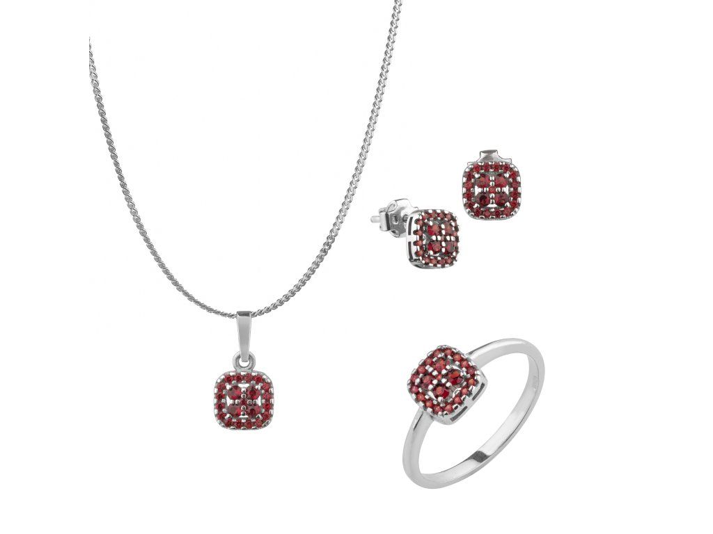 Stříbrný set šperků 1487 s českým granátem, rhodiovaný - čtverec
