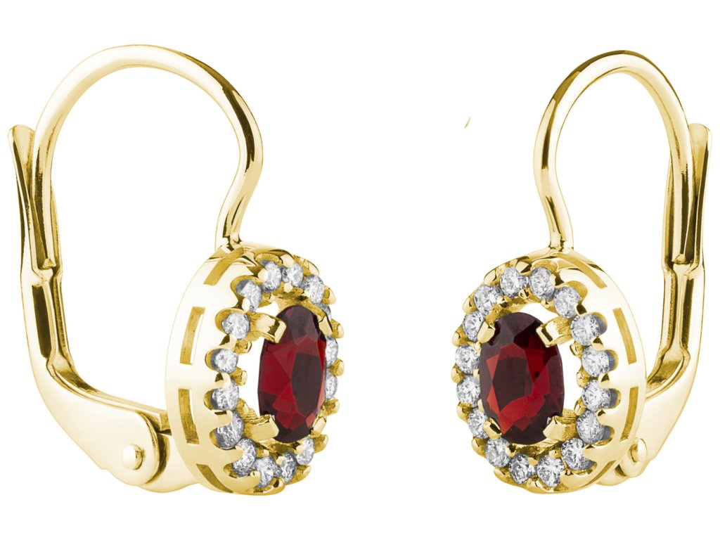 Zlaté náušnice s českým granátem a diamantem - ovál