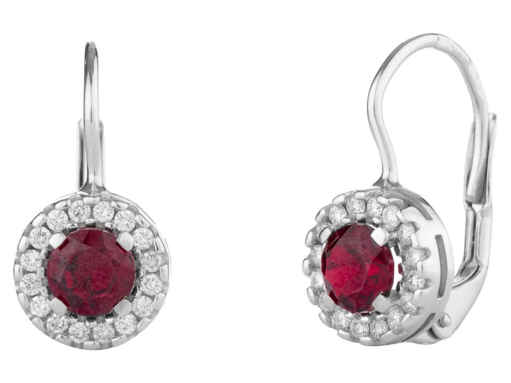 Zlaté náušnice z bílého zlata s českým granátem a diamantem - kruh