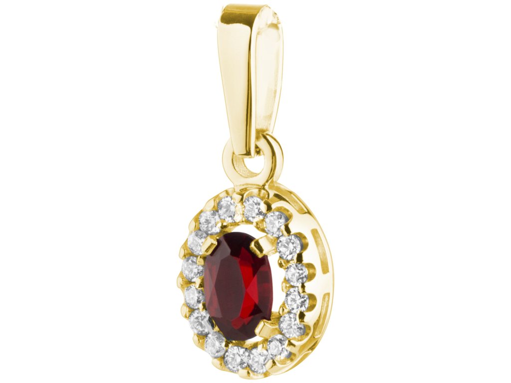 Zlatý přívěsek s českým granátem a diamantem - ovál