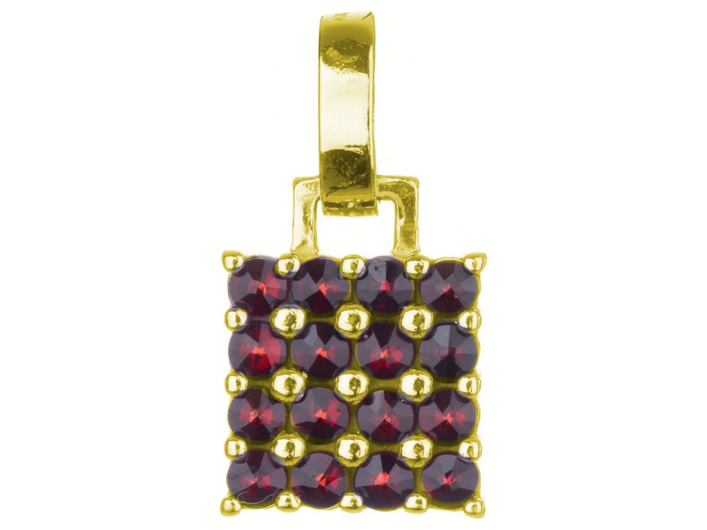 Tento stylový přívěsek je vyroben ze zlata (Au 585/1000). Je zdoben českým granátem. Přívěsek má motiv čtverec o velikosti 9x9 mm.