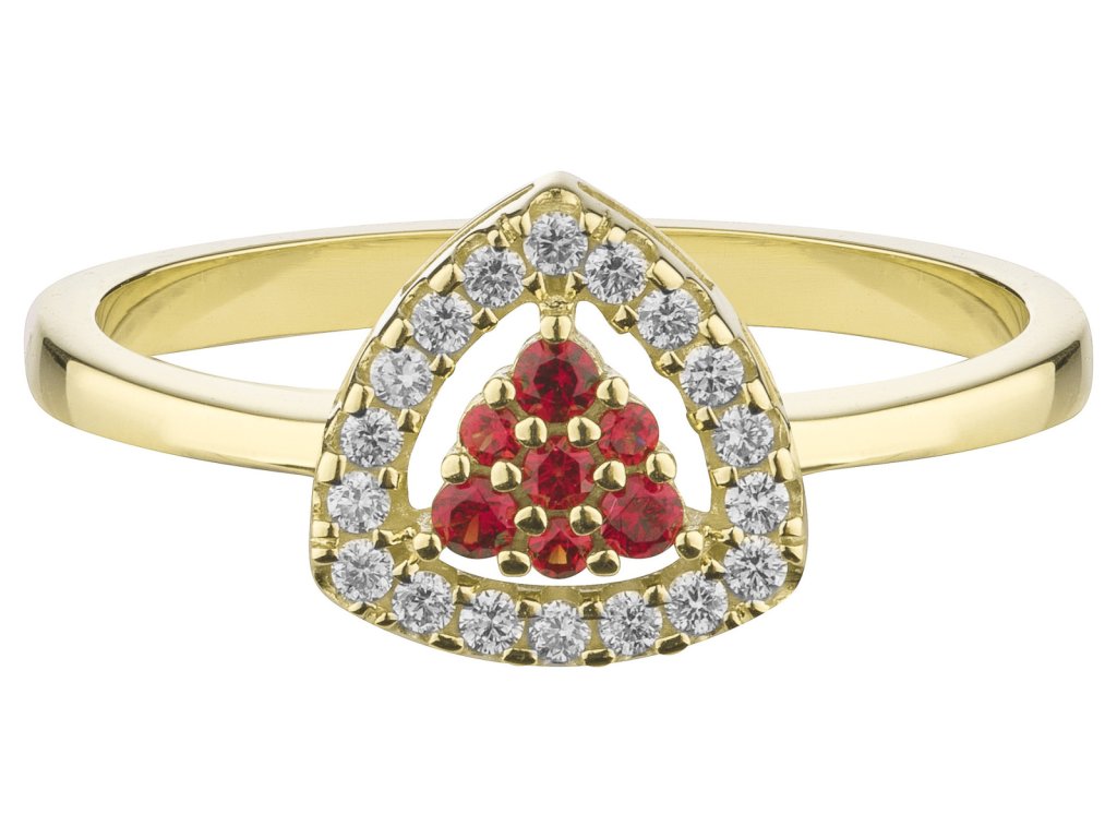 Zlatý prsten s českým granátem a diamantem - trojúhelník