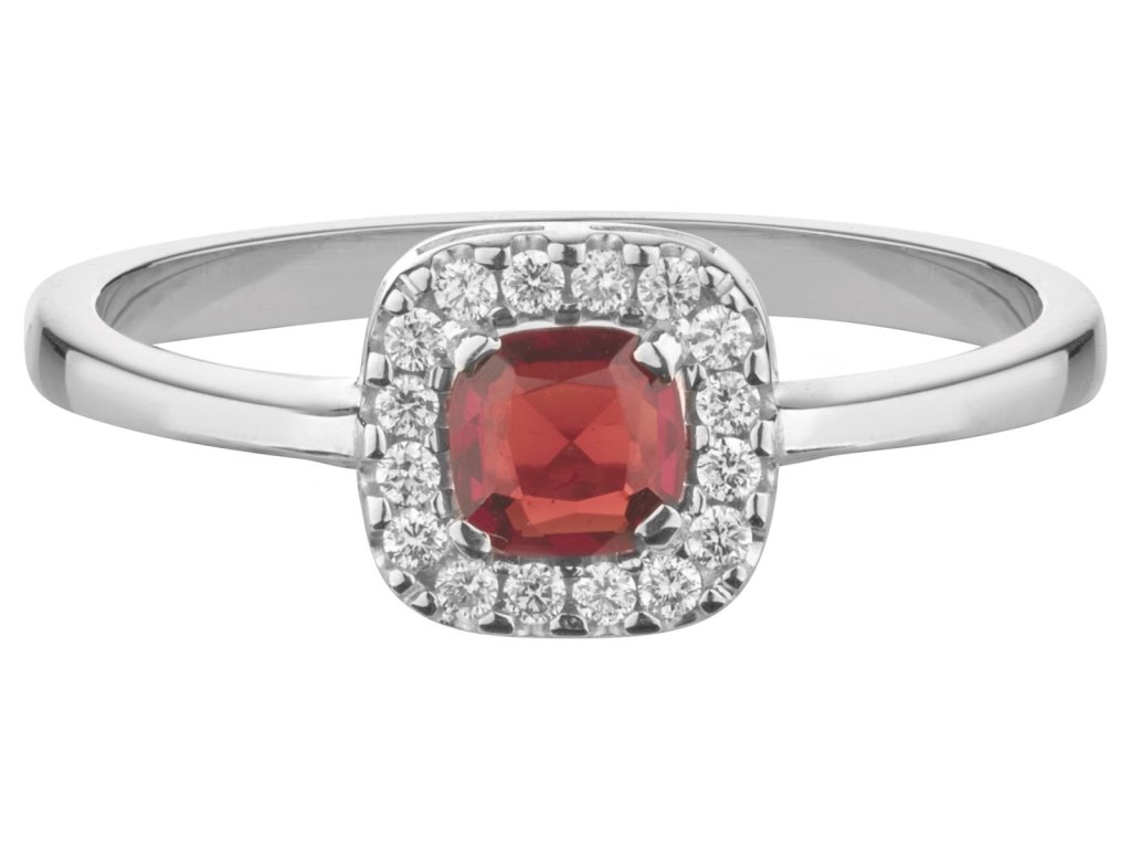 Zlatý prsten z bílého zlata s českým granátem a diamantem - čtverec