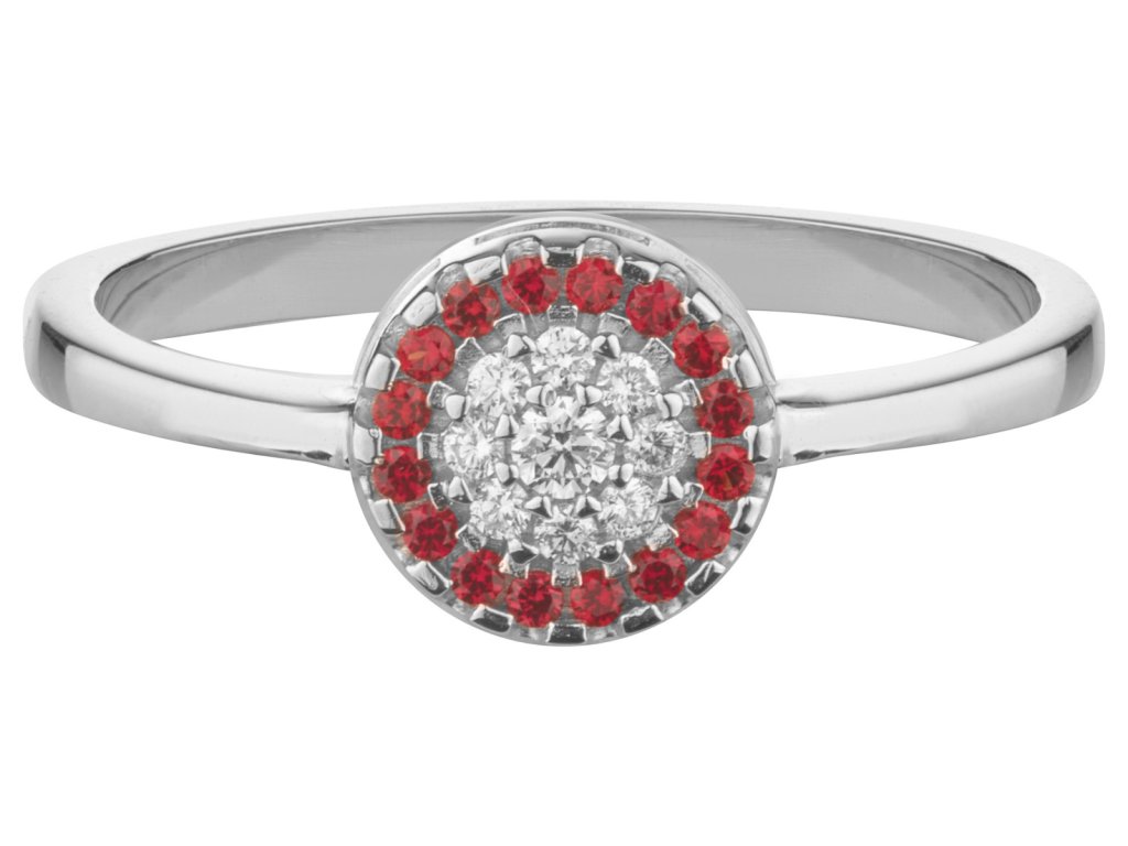 Zlatý prsten z bílého zlata s českým granátem a diamantem - kruh