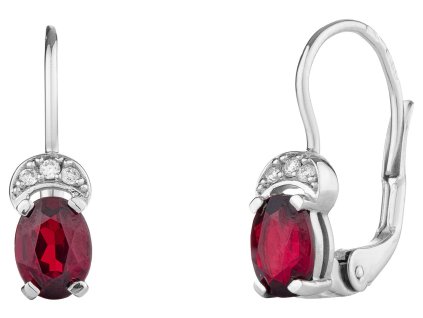 Zlatý prsten z bílého zlata s českým granátem a diamantem - ovál